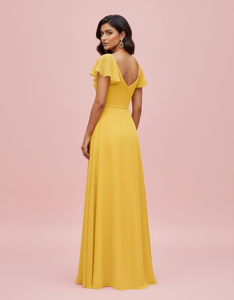 Butterscotch Yellow Georgette Bell Sleeves V Neck GownButterscotch Yellow Georgette Bell Sleeves V Neck Gown